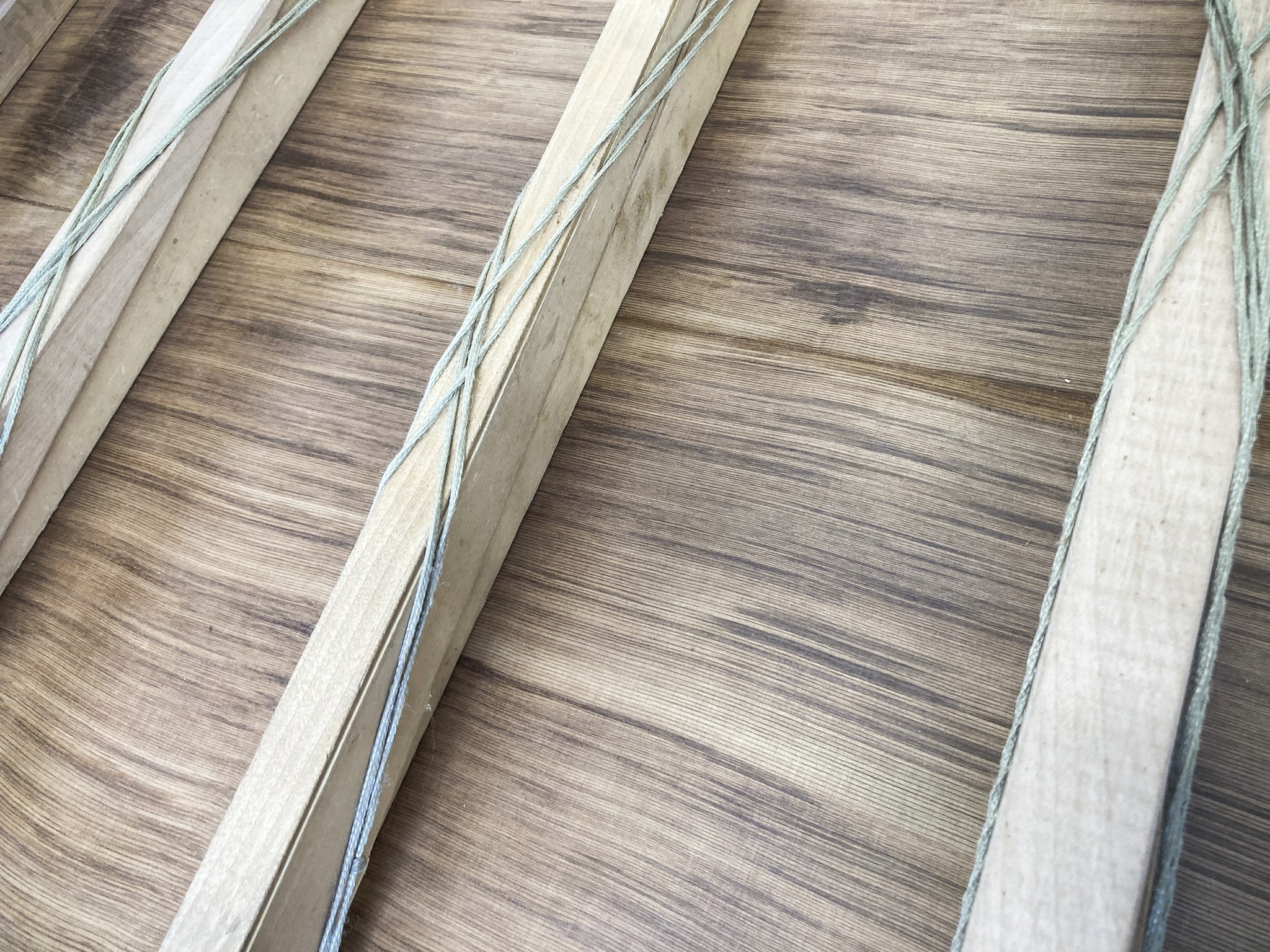 Ci-contre : La table en cèdre rouge de l’ouest « sinker » pendant le collage. Le bois a été récolté sur des troncs abandonnés au sol de la forêt. Ces troncs se sont chargés en minéraux, ce qui donne à cette table sa teinte caractéristique !
